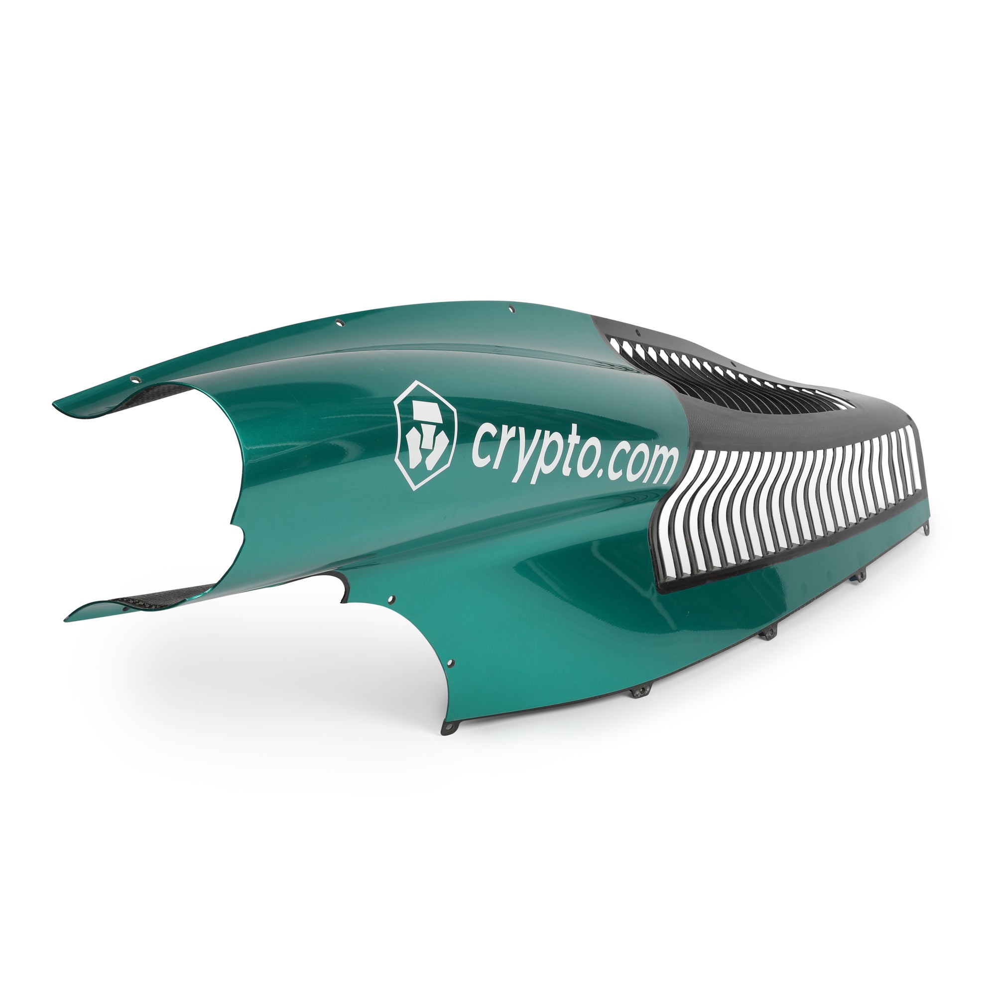 This striking engine cover louvre panel has been taken from the right-hand of an Aston Martin Aramco Cognizant Formula One® race car. Taken directly from the AMR23’s sidepod assembly used during the team’s most successful campaign to date, this panel once played a vital role in cooling, airflow management and aerodynamic efficiency as the team tackles the world’s greatest circuits.