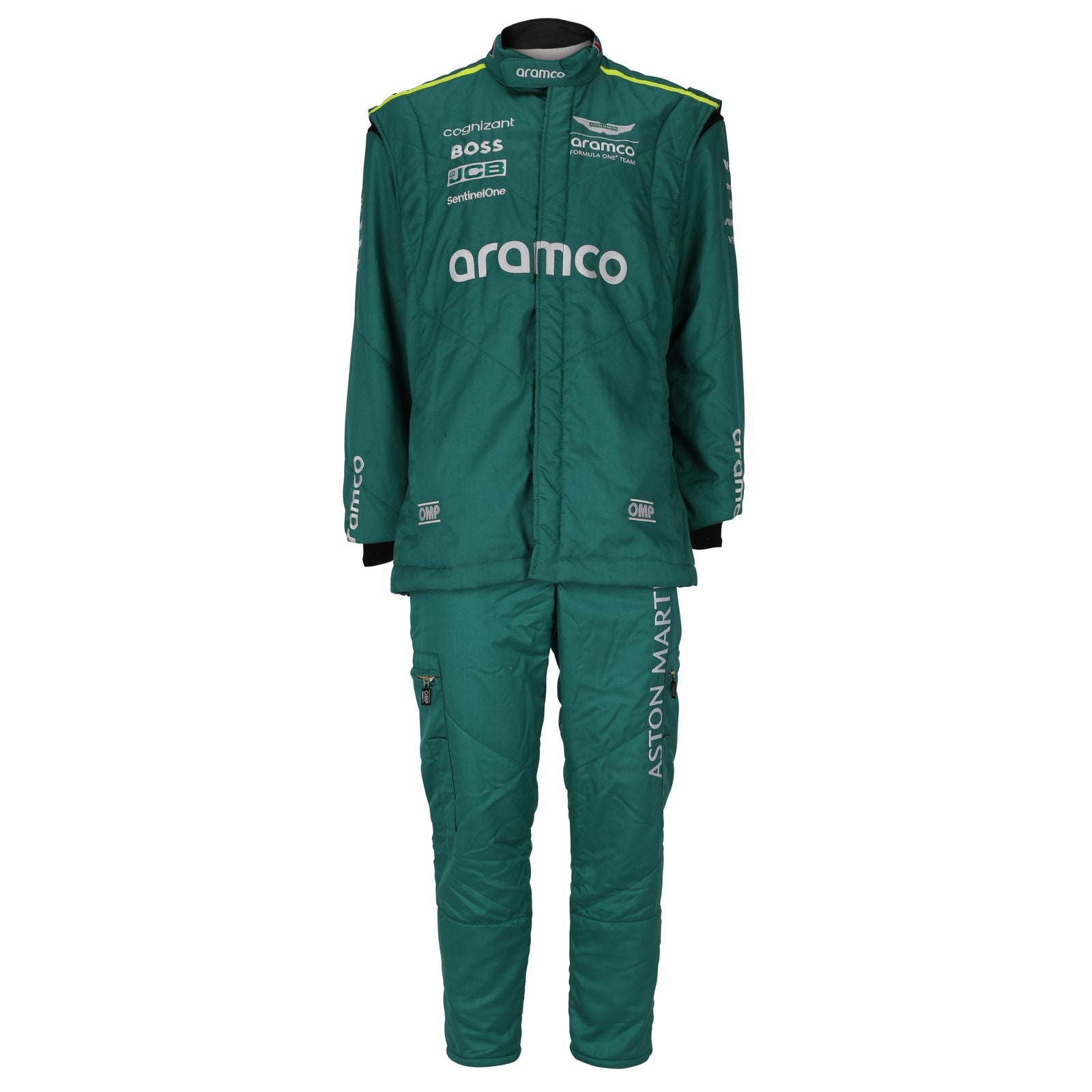 Designed for performance and durability, this suit features the official Aston Martin branding and the iconic team colours, making it a must-have for any Formula 1 collector or fan of the Aston Martin Aramco Cognizant Formula One™ Team.