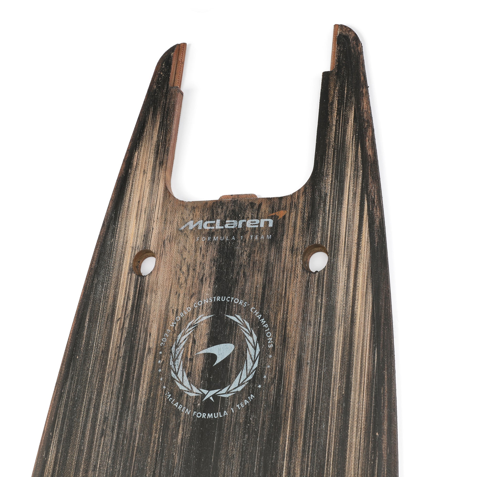 This plank once ran on the underneath the MCL38, driven by Lando Norris at the 18th round of the 2024 season – the Singapore Grand Prix. McLaren achieved a double podium finish at this race, with both Norris and Piastri adding valuable points towards securing the team its first Constructors Championship in 26 years. For the Singapore Grand Prix, McLaren unveiled their ‘Legend Reborn’ livery. A stunning design that paid homage to the team’s iconic MP4 era, blending heritage-inspired white and papaya tones to celebrate McLaren’s storied history under the night lights of Marina Bay.