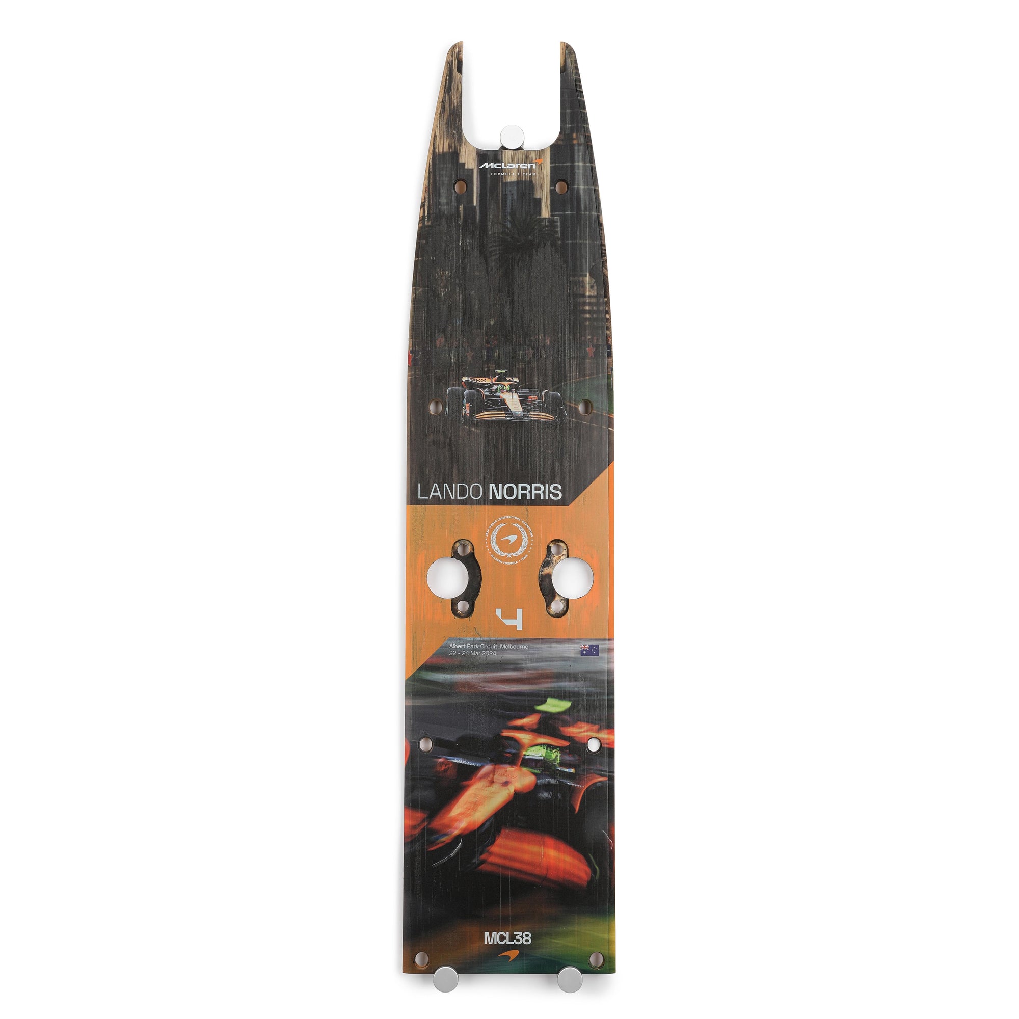 This plank once ran on the underneath of Lando Norris’ MCL38, driven during the weekend of the third-round of the 2024 season. Lando Norris drove to a podium finish at the Albert Park Circuit, clinching a third-place finish from fourth on the grid.
