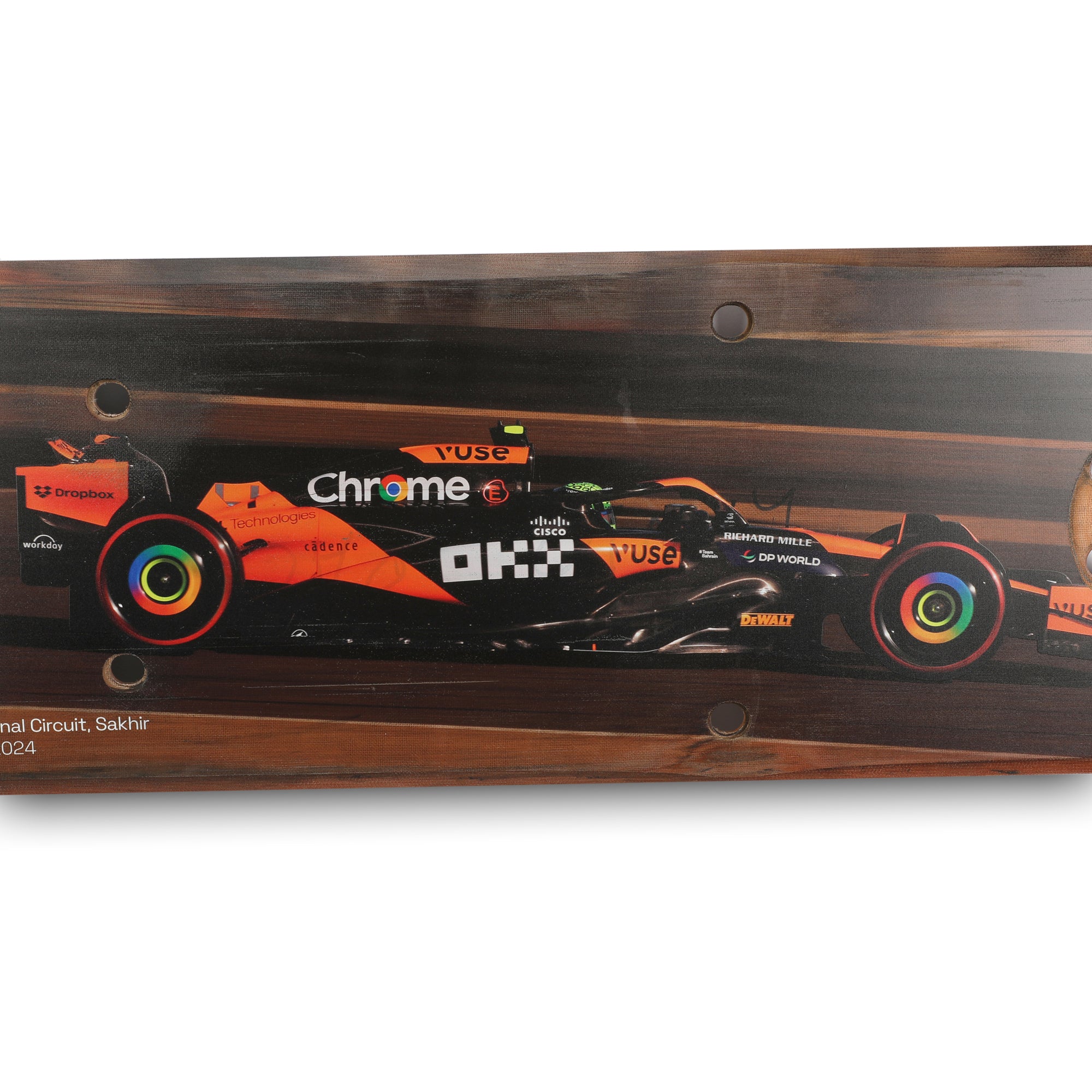Own an authentic piece of Lando Norris’ 2024 F1® season with this unique piece of wall art, crafted using a race used skid block plank used at the 2024 season opener, the Bahrain Grand Prix.  T...