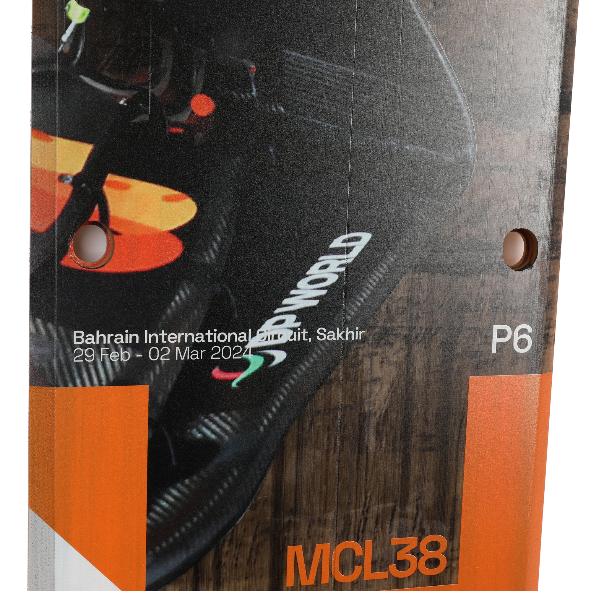 This plank once ran on the underneath of Lando Norris’ MCL38, driven during the first round of the 2024 season – the Bahrain Grand Prix. Lando Norris drove to sixth place at Bahrain International Circuit kick starting his 2024 campaign.