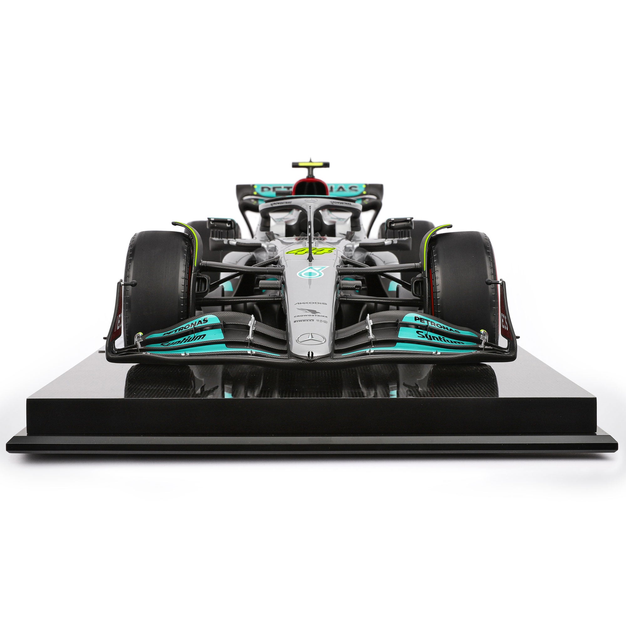 Lewis Hamilton, the maestro of the track, merged his fate with Mercedes-AMG Petronas Formula One Team in 2013, marking the beginning of a legendary alliance. Together, they've blazed through circuits worldwide, with Hamilton clinching six of his record-shattering World Championship titles under their emblem. This model encapsulates their combined prowess, as they showcased an electrifying performance in the 2022 season, perfectly complemented by teammate Russell's resounding victory at the Brazilian Grand Prix.