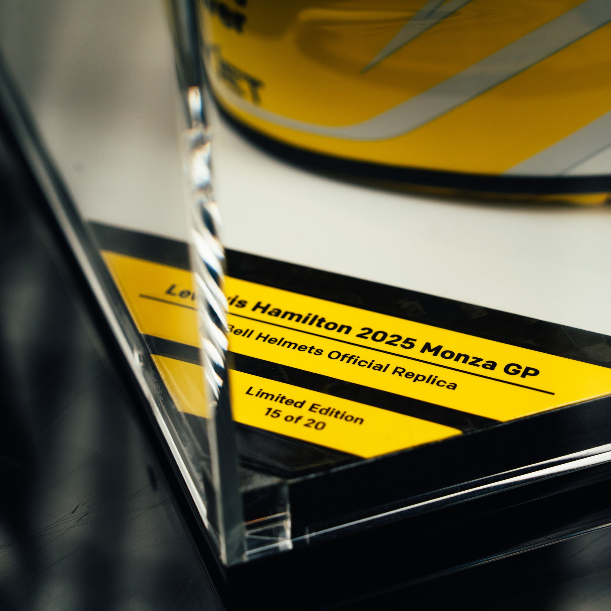 - Full-size 1:1 Bell replica helmet styled after Hamilton’s 2025 Italian Grand Prix design