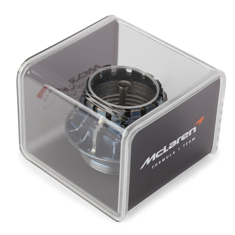 LOT 258 - McLaren 2022 Race-Used Wheel Nut in Display Case - Blue