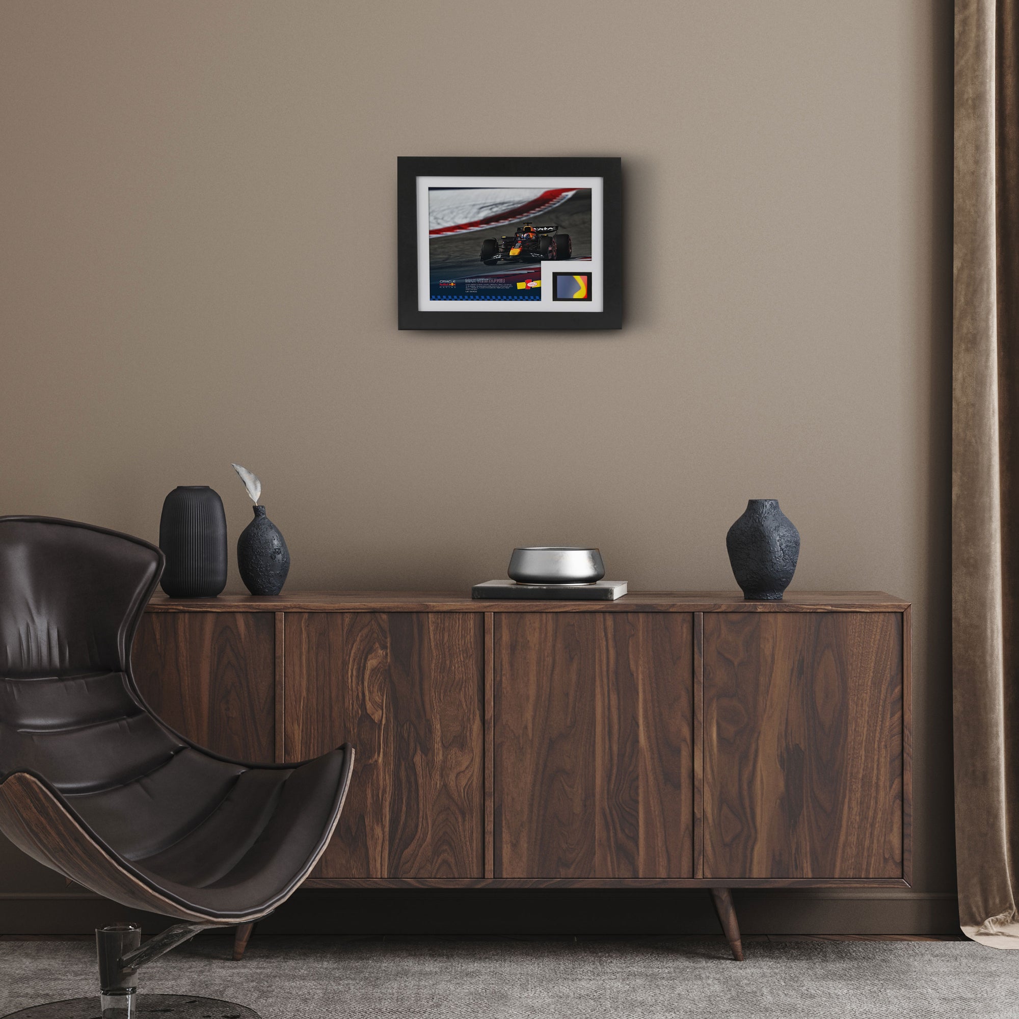 This bodywork has been created by the F1® Authentics team, using the exact processes that Oracle Red Bull Racing underwent to manufacture the official bodywork of the RB21s. Hand-cut, each piece is unique, giving each collector their own piece of history. Framed alongside a photograph of Verstappen at the 2025 United States GP, which he stormed to victory at, this display is unmissable for fans of the Dutch legend.
