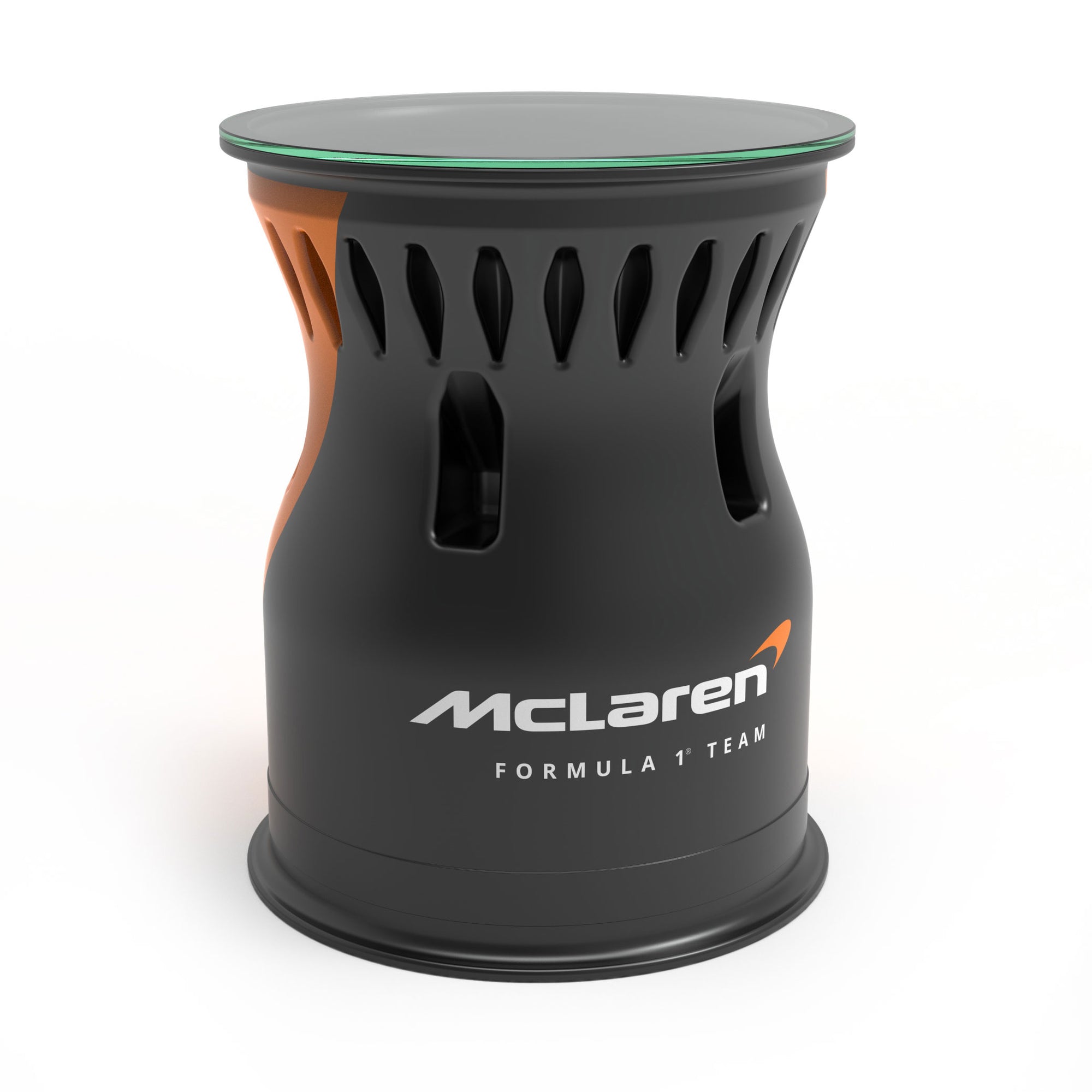 This authentic McLaren Formula One® wheel rim has been transformed into a striking coffee table, bearing a design painted with the famous Championship Winning papaya colours. Sourced directly from the McLaren Technology Centre, this race-used rim represents the precision, innovation, and performance that define one of the sport’s most iconic teams.