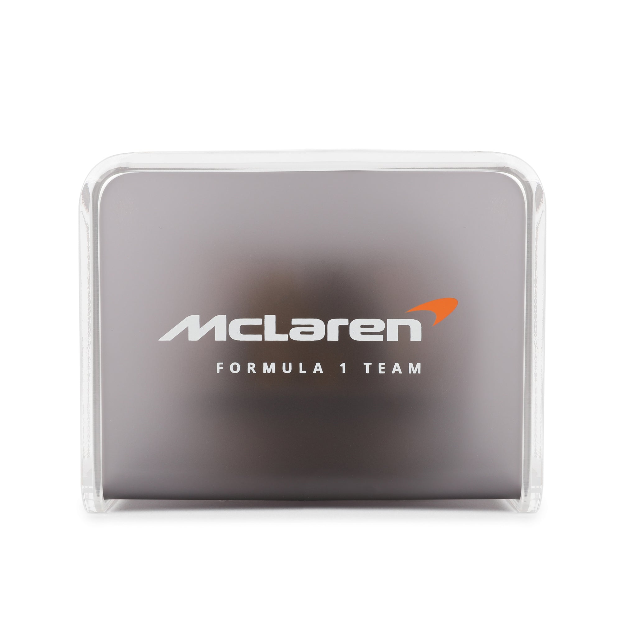 Formula One® fans have the opportunity to own a genuine piece of race-used history with this McLaren wheel nut in display case. The wheel nut was used on the McLaren car during the 2023 season, driven by Lando Norris and Oscar Piastri.