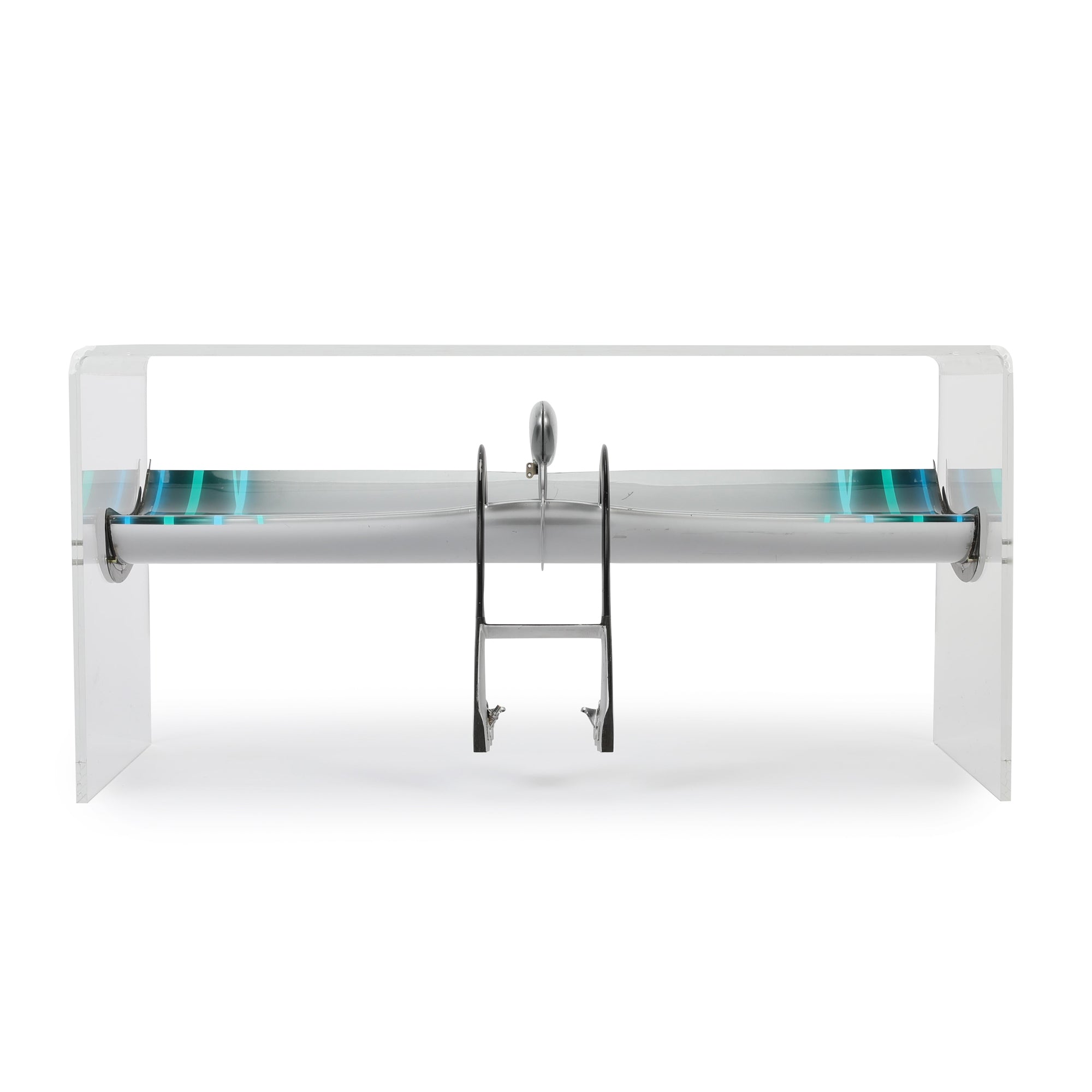 Expertly adapted into a premium furniture display piece, the rear wing is paired with a sleek tabletop surface, transforming a core F1 aerodynamic component into a bold centrepiece. Perfect for offices, showrooms, hospitality areas, or dedicated motorsport interiors, it delivers the presence and prestige of the Formula 1 paddock in a refined, usable form.