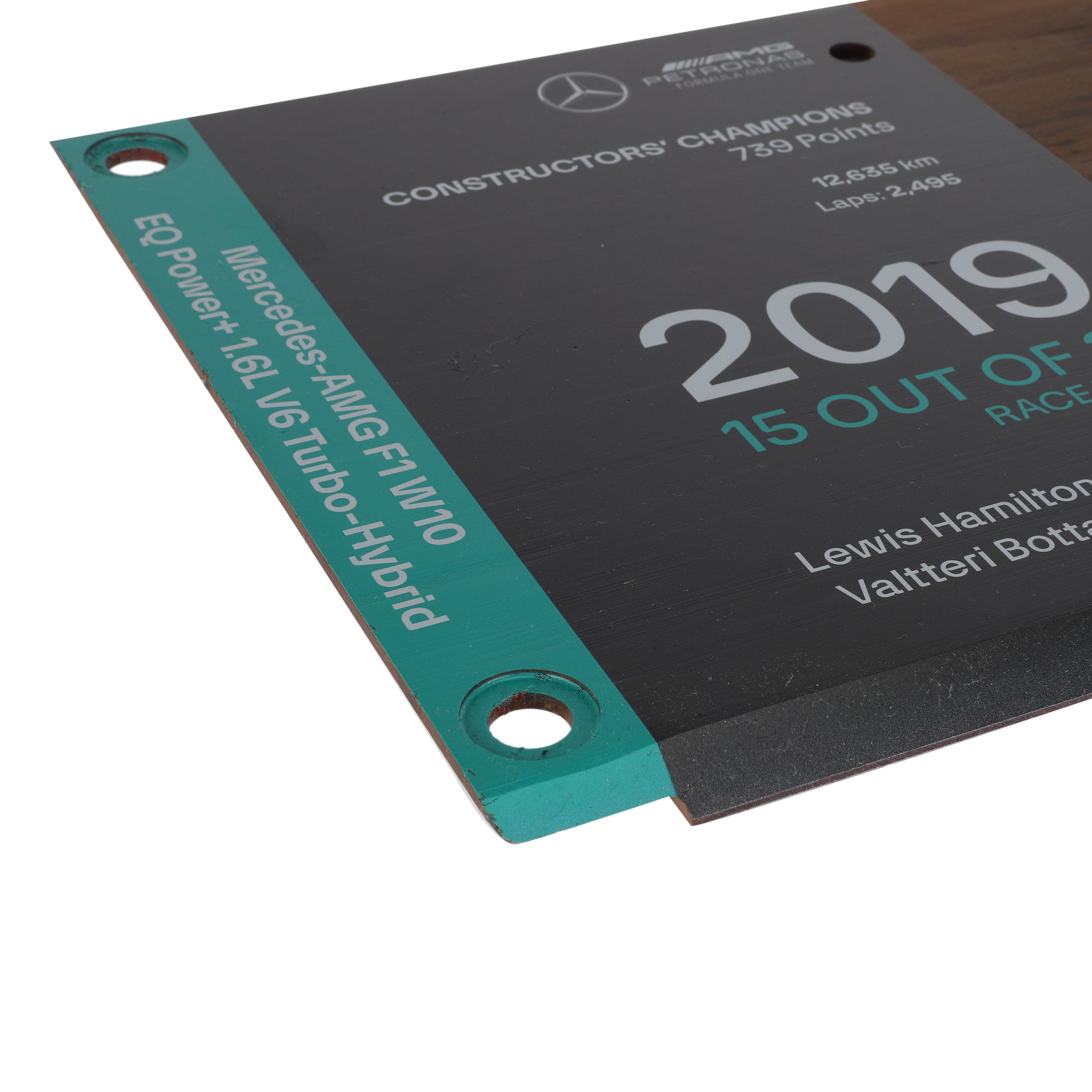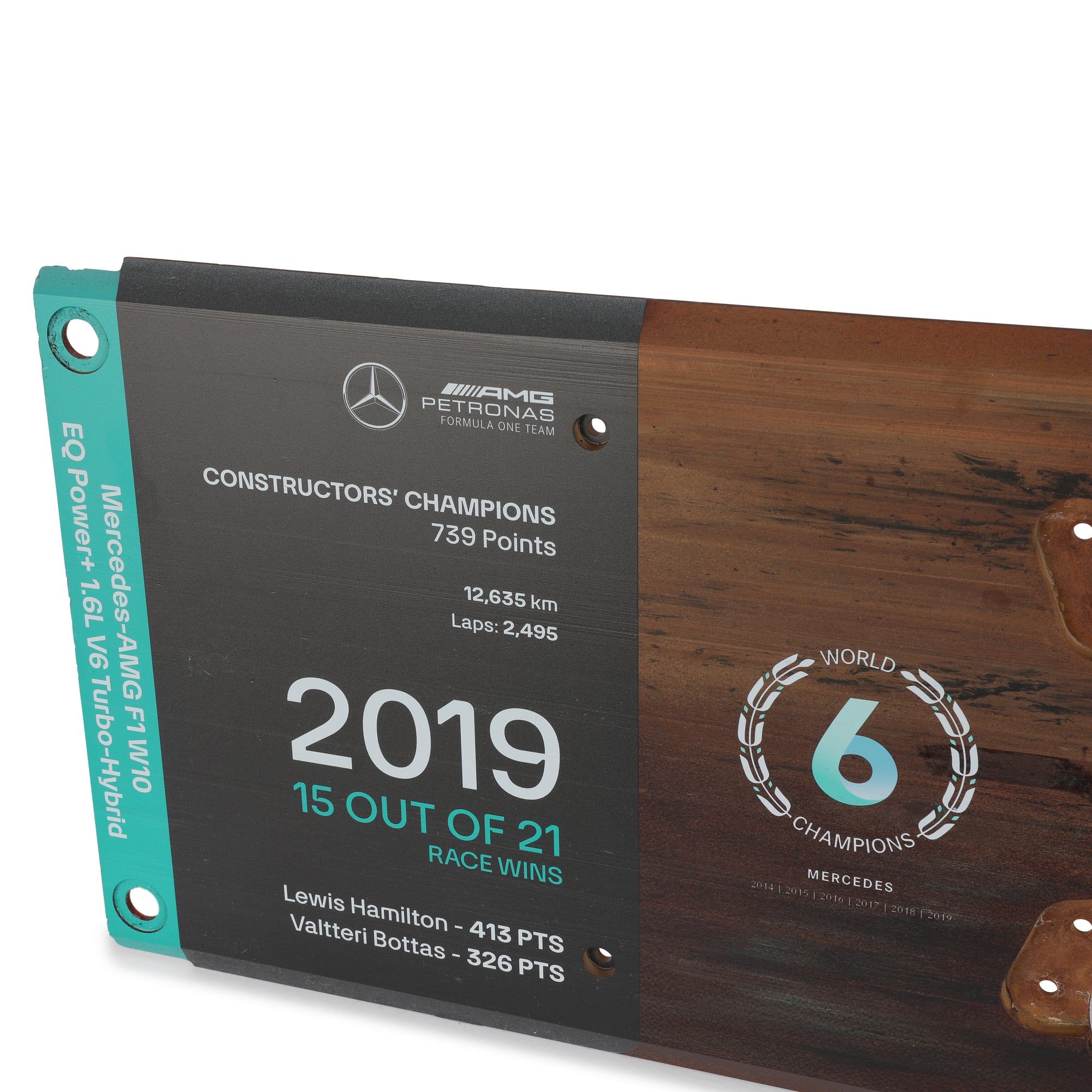 This plank once ran on the underneath of the Mercedes Petronas AMG W10 during the 2019 Formula One® season. A season in which Mercedes dominated the grid with 15 race wins across the two drivers’ as they went on to clinch both titles.