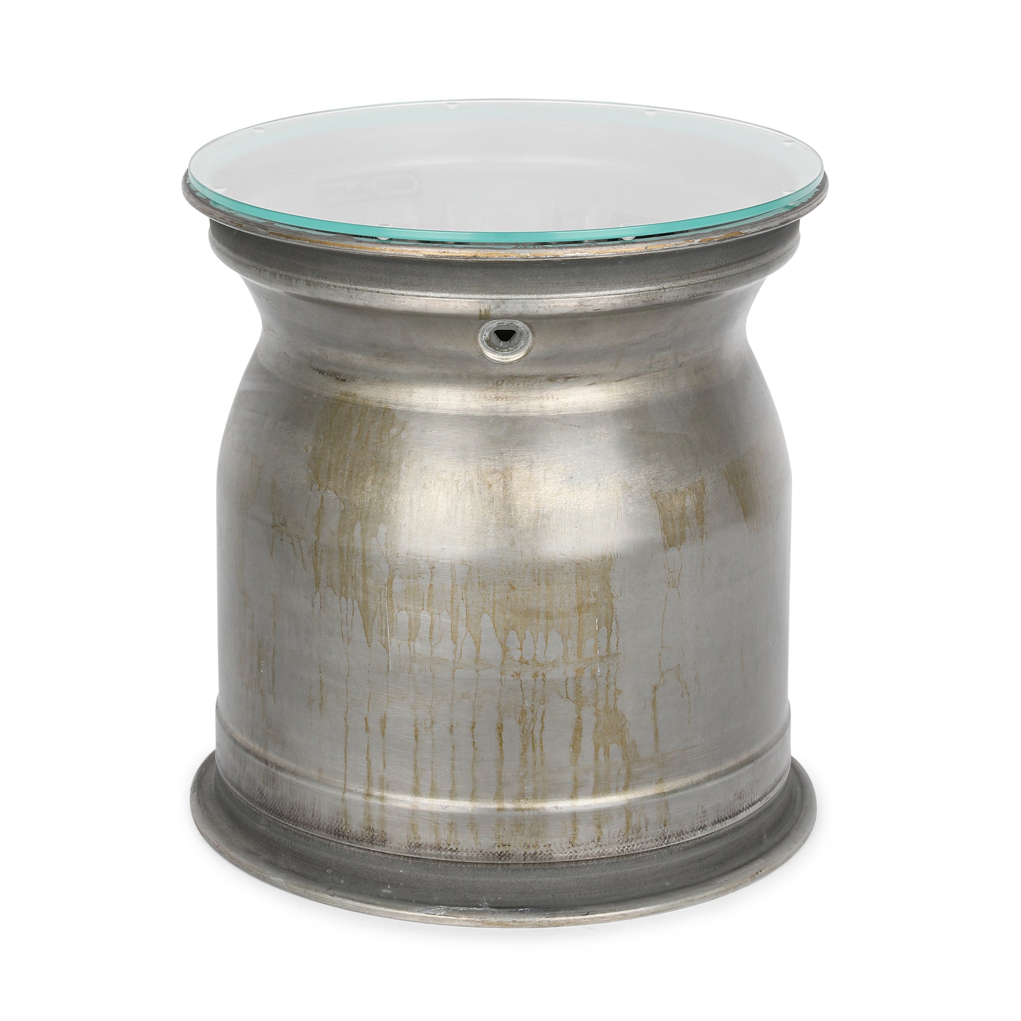 - Re-engineered into a table, topped with glass