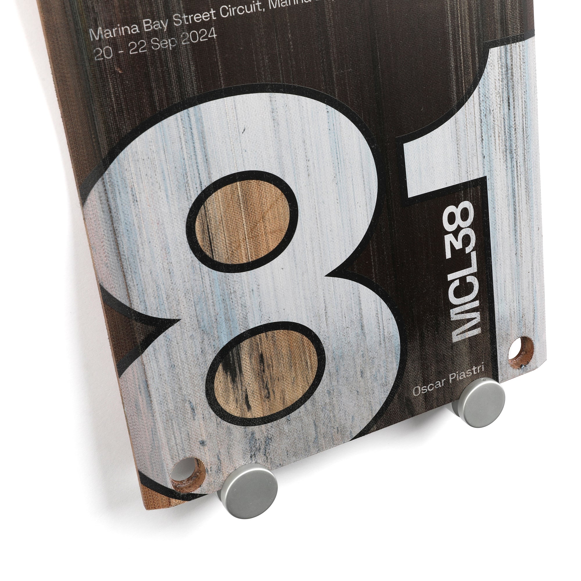 Own an authentic piece of Oscar Piastri memorabilia from the 2024 F1® season with this unique piece of wall art, crafted using a race used skid block plank used at the 2024 Singapore Grand Prix.
