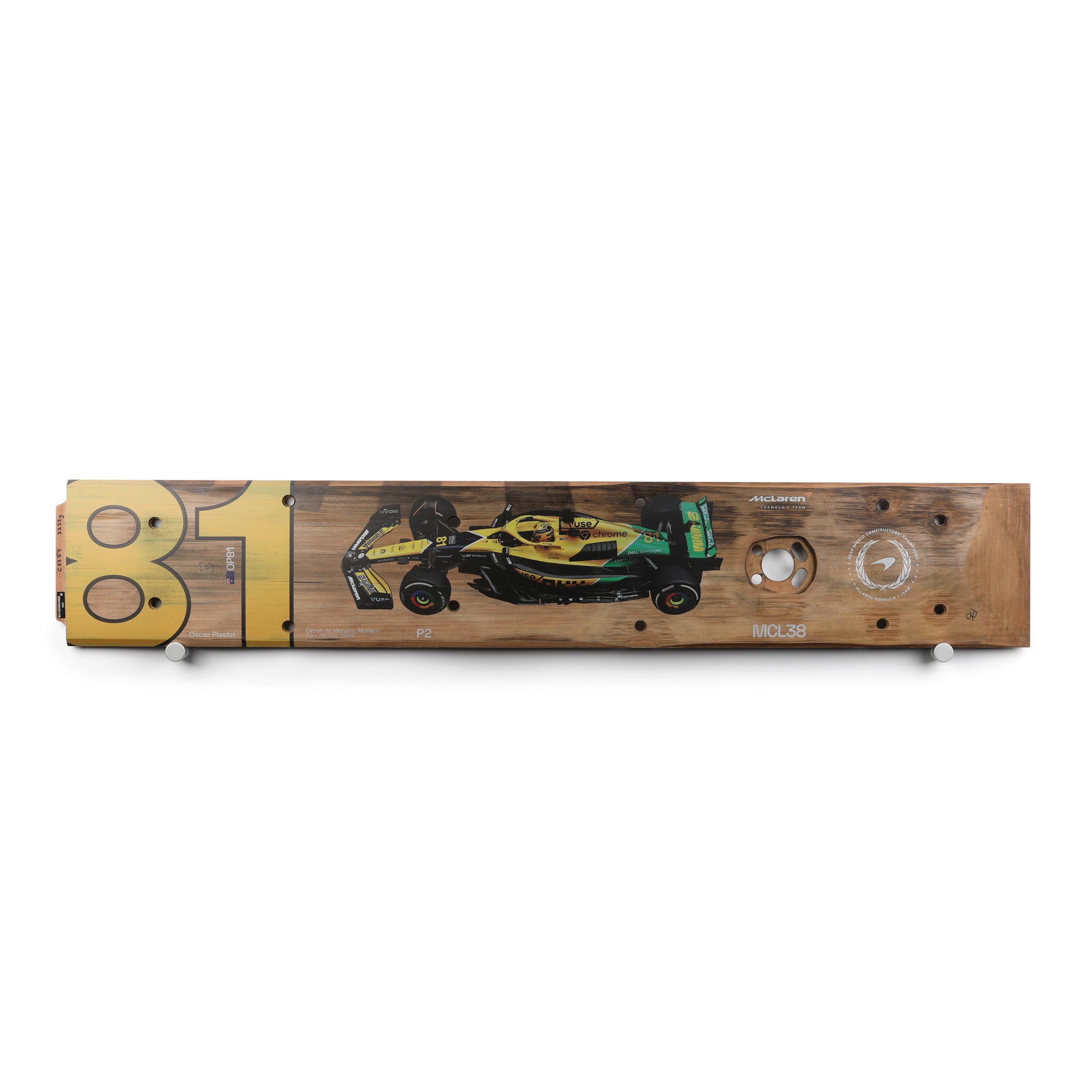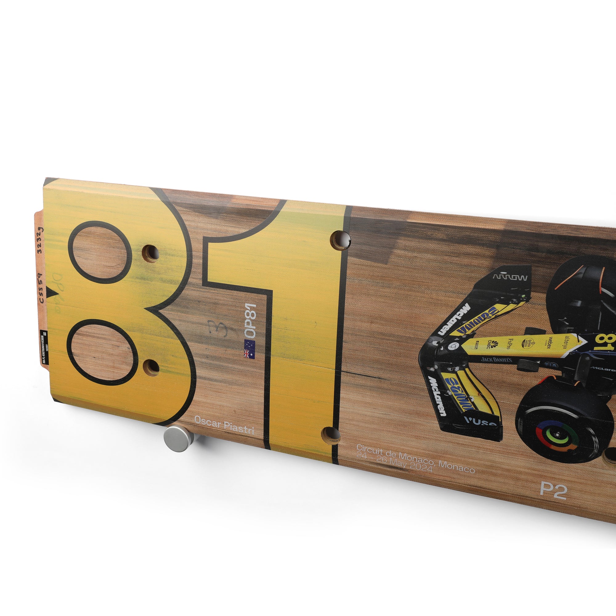 Own an authentic piece of Oscar Piastri’s 2024 F1® season with this unique piece of wall art, crafted using a race used skid block plank used at the 2024 Monaco Grand Prix.