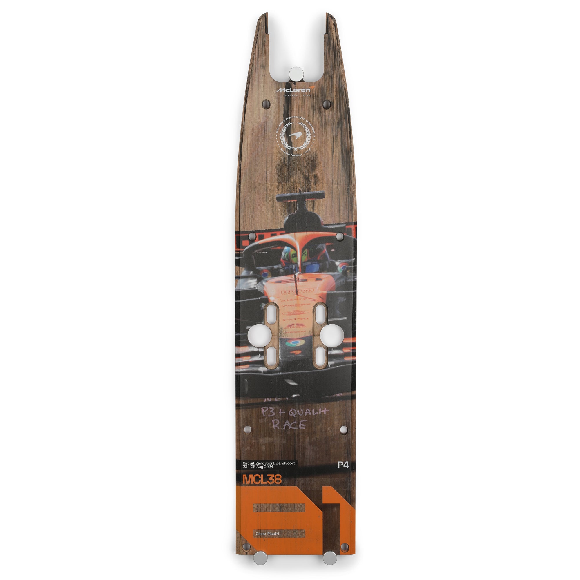 This plank once ran on the underneath of Oscar Piastri’s MCL38, driven at the 15th round of the 2024 season – the Dutch Grand Prix. Oscar Piastri drove an incredible race, claiming fourth place and adding valuable points to his 2024 campaign.