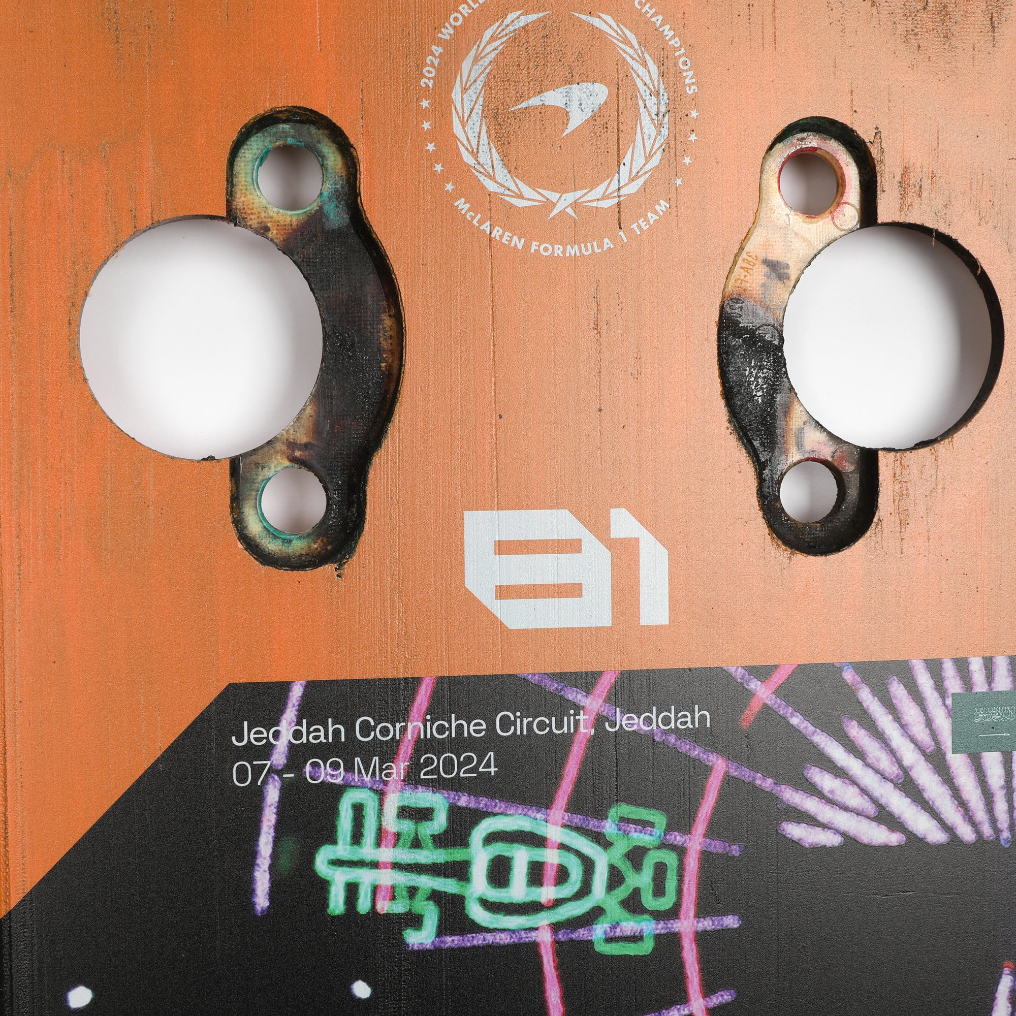 Own an authentic piece of Oscar Piastri’s 2024 F1® season with this unique piece of wall art, crafted using a race used skid block plank used at the 2024 Saudi Arabian Grand Prix.
