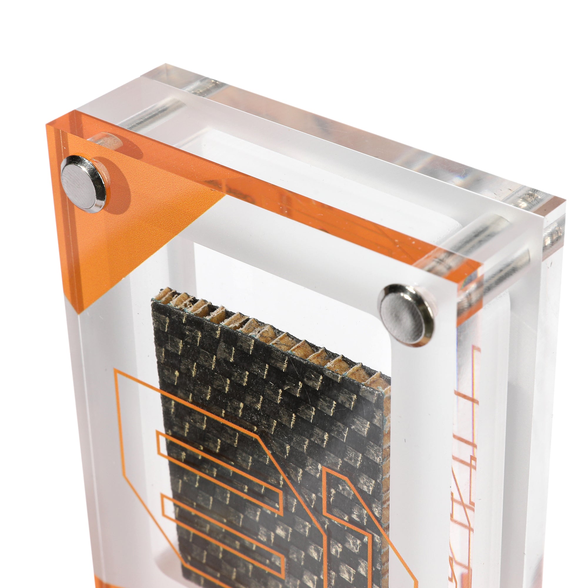This piece of bodywork has been hand-cut by the team at F1® Authentics from a genuine sidepod taken from the MCL38s of 2024. Embedded within transparent acrylic allowing you to admire the intricate detailing, these displays make the perfect tribute.
