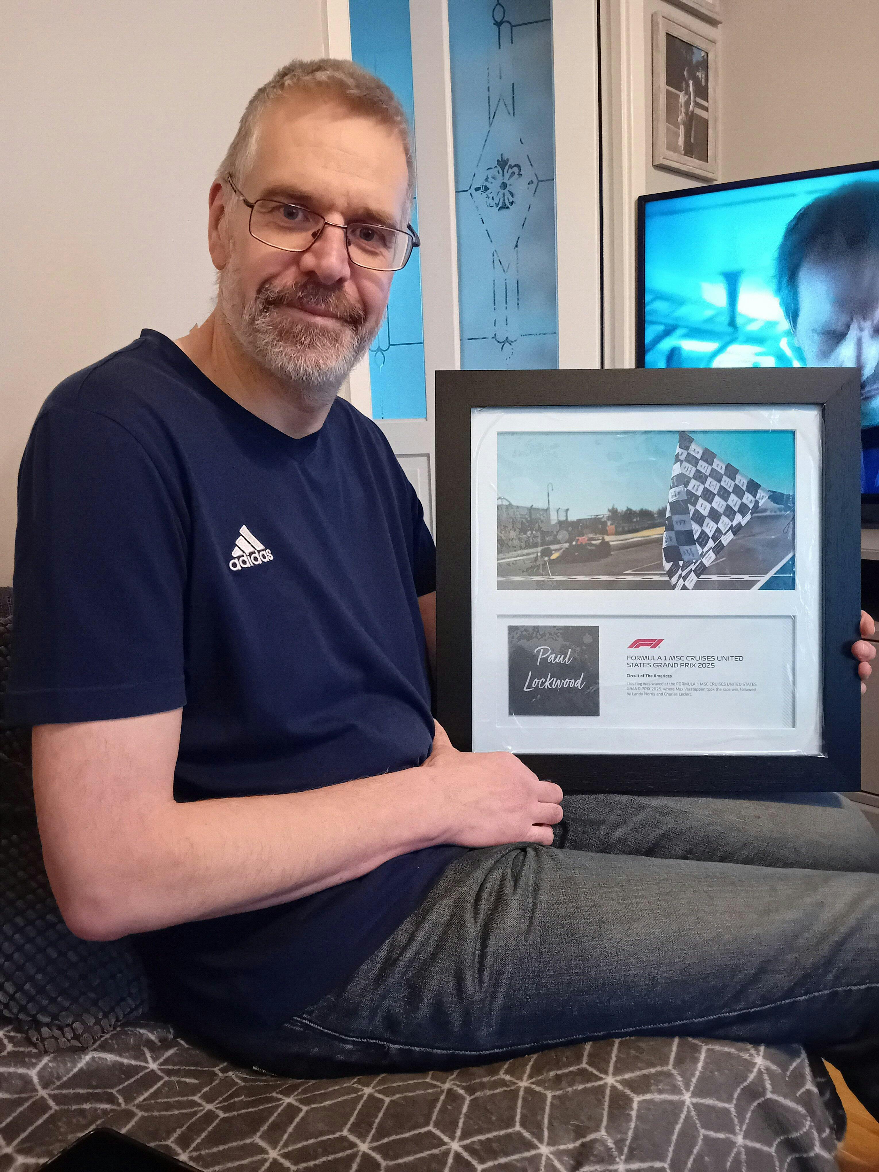 - We hand cut each square and professionally frame it, along with a photograph specific to race it was waved at taken by a professional F1 photographer