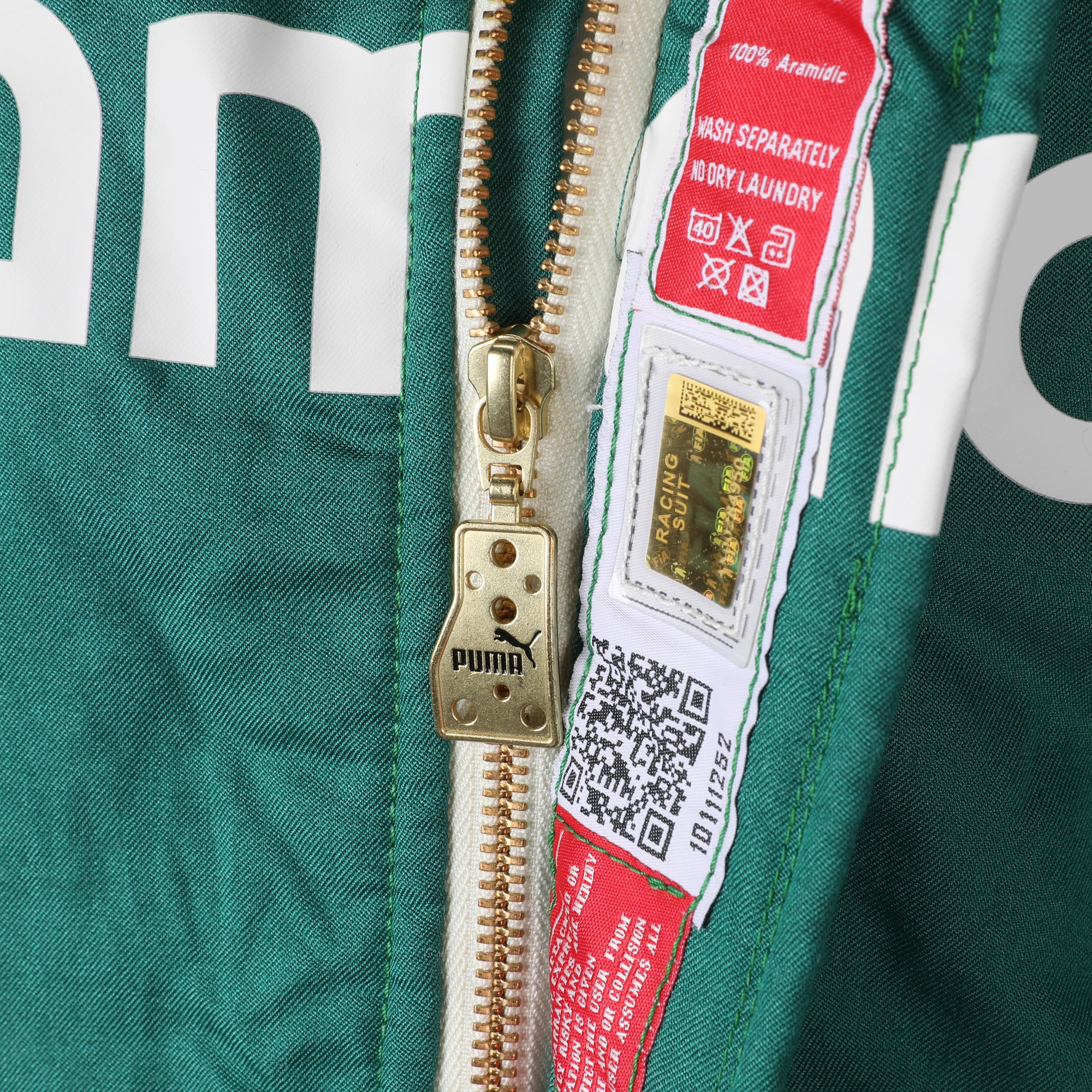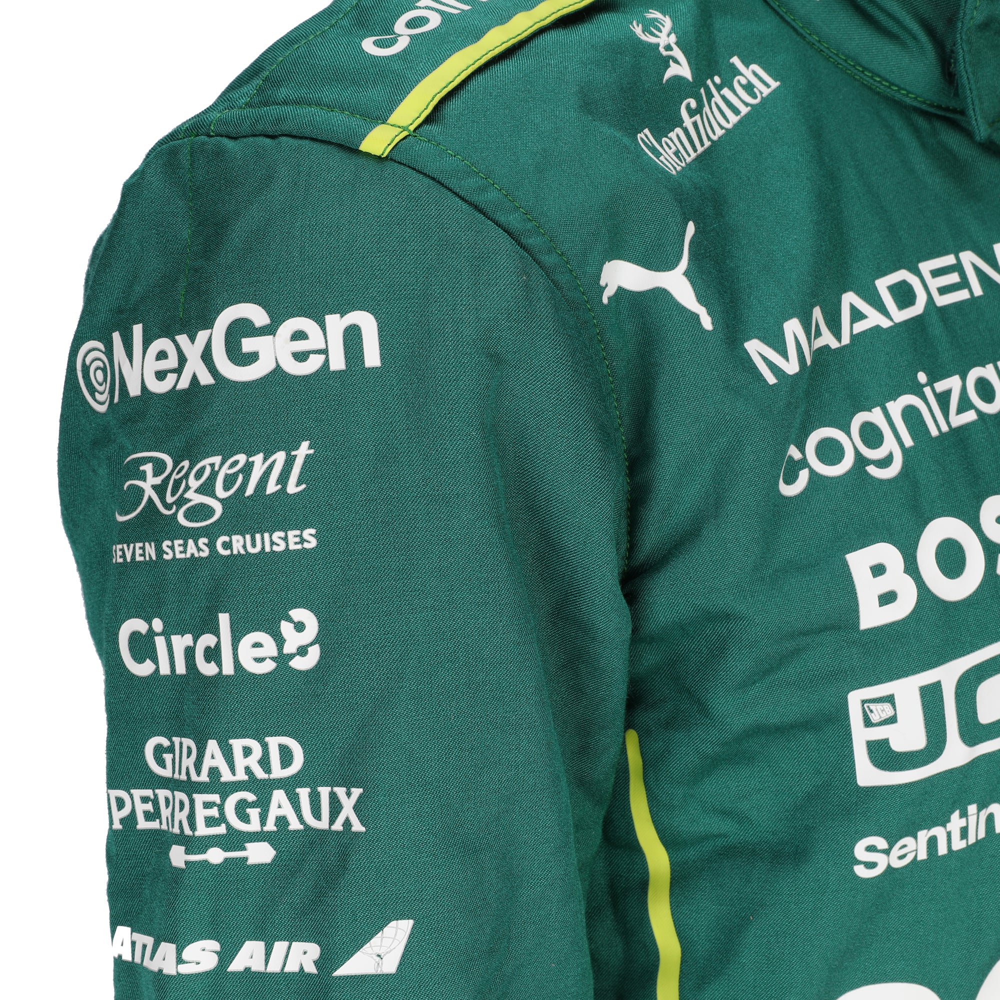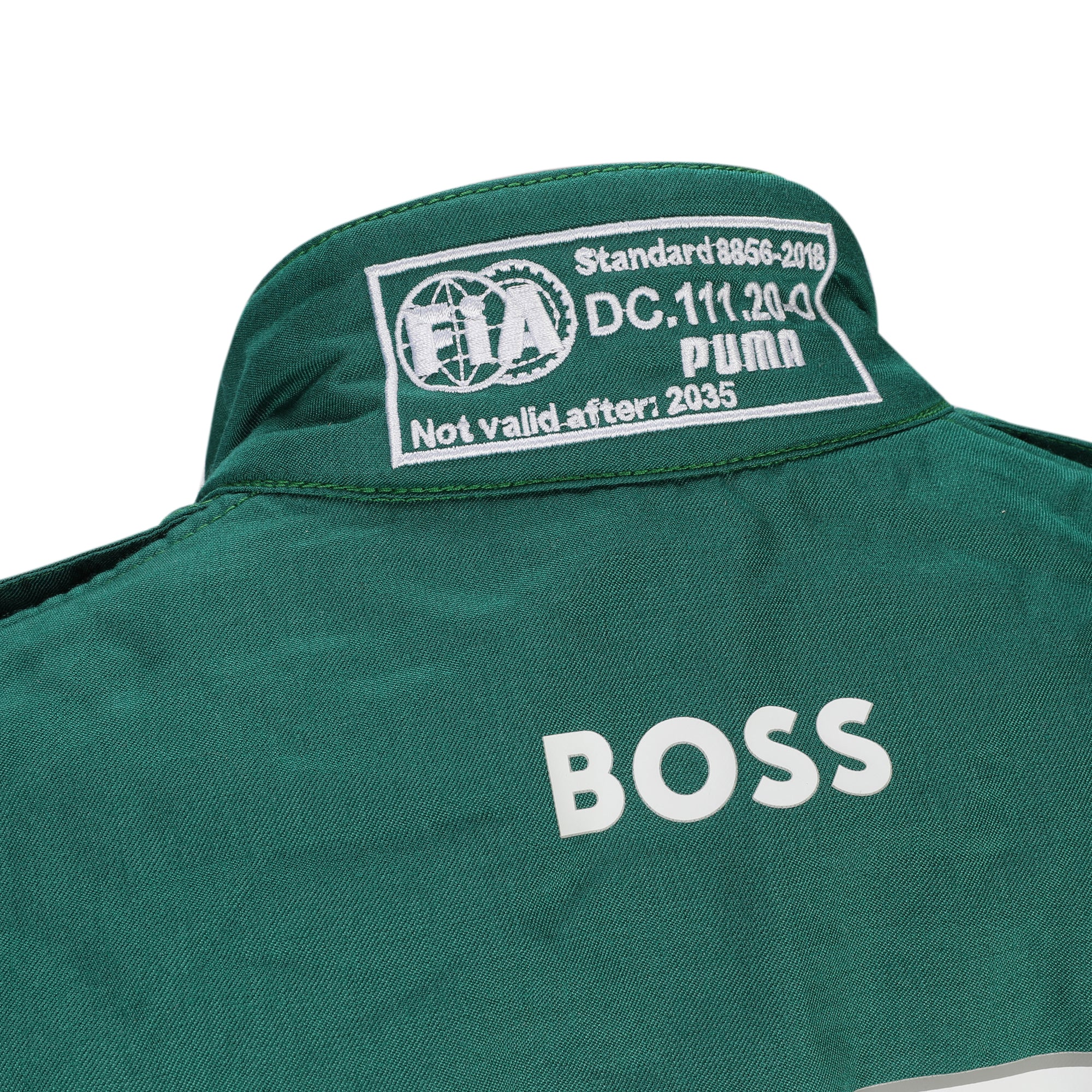 Constructed to FIA fire-resistant standards, the suit is engineered to withstand extreme cockpit temperatures while maintaining flexibility and comfort under sustained G-forces. Featuring Aston Martin’s iconic racing green livery with contemporary sponsor branding, it reflects the team’s evolving identity within the current Formula One landscape.