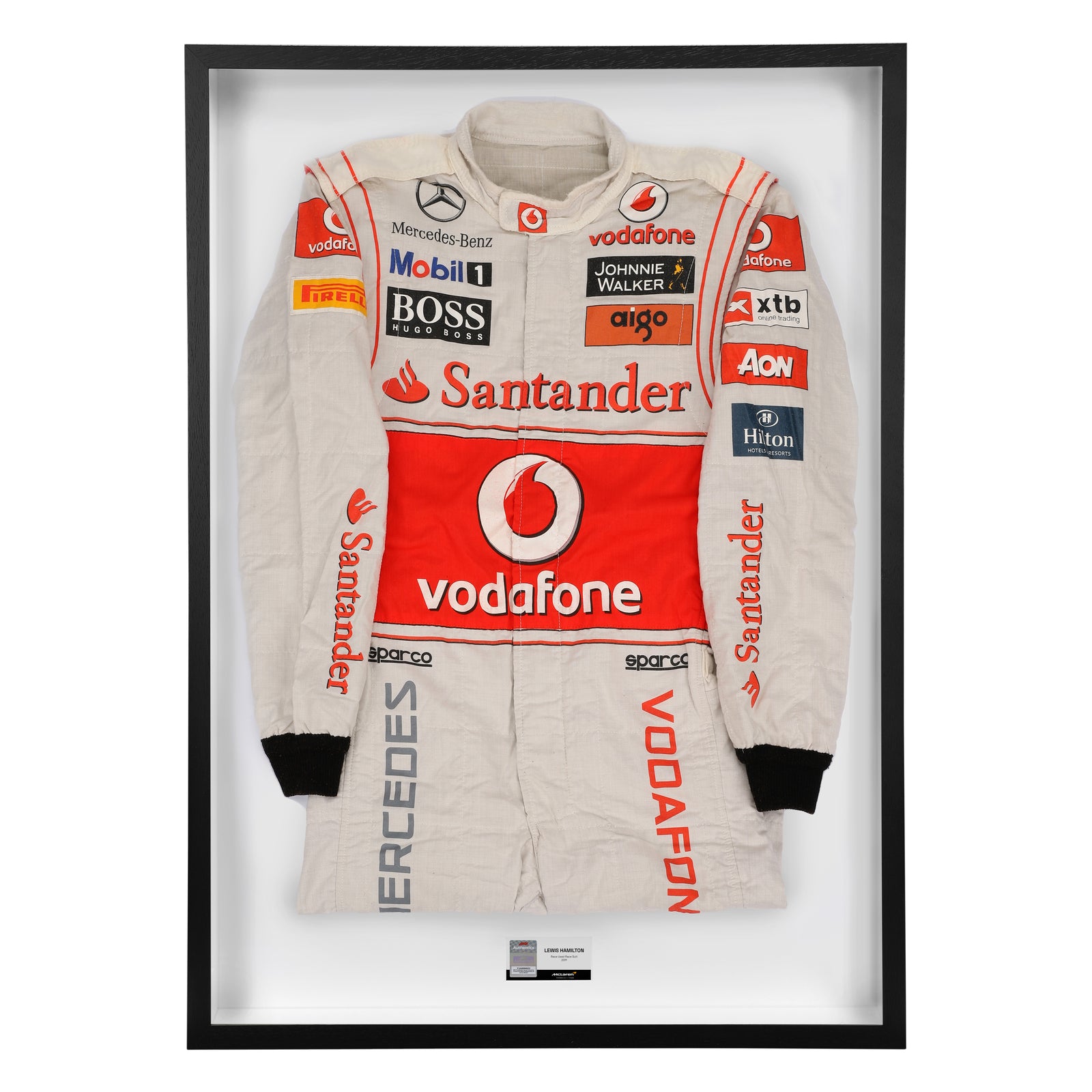 Expertly mounted and presented in a premium display frame, the suit has been preserved as a sporting artefact. It serves as a reminder of Hamilton’s resilience during the 2011 season and his ongoing chase for excellence that would later see him equal and surpass records once thought untouchable. To make it even more exclusive, it features a signature from the British legend himself, adding to its provenance.