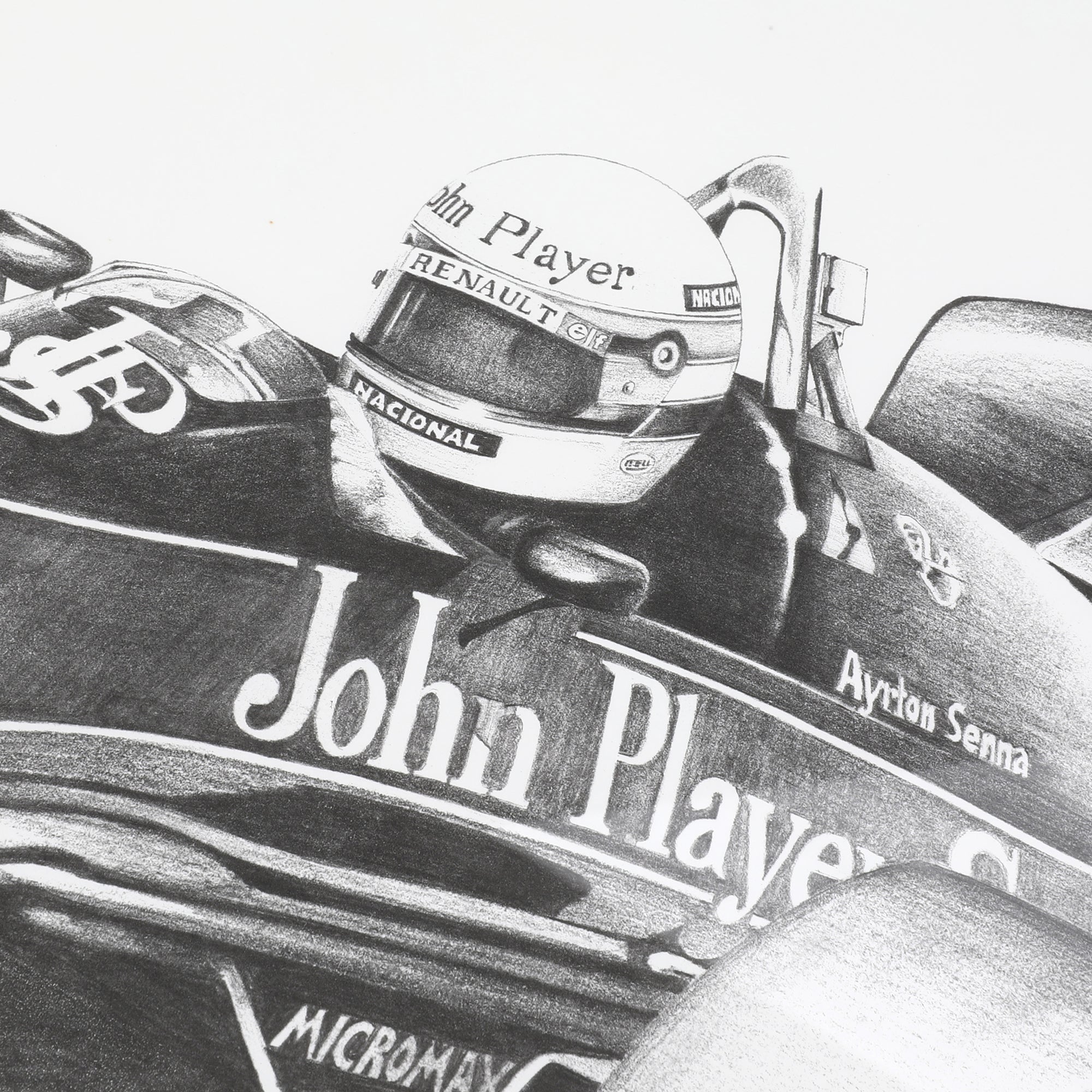 Personally signed by Ayrton Senna, this print carries exceptional historical and emotional significance. Signed Senna pieces remain among the most sought-after in all of motorsport memorabilia, combining rarity, legacy and enduring global appeal.