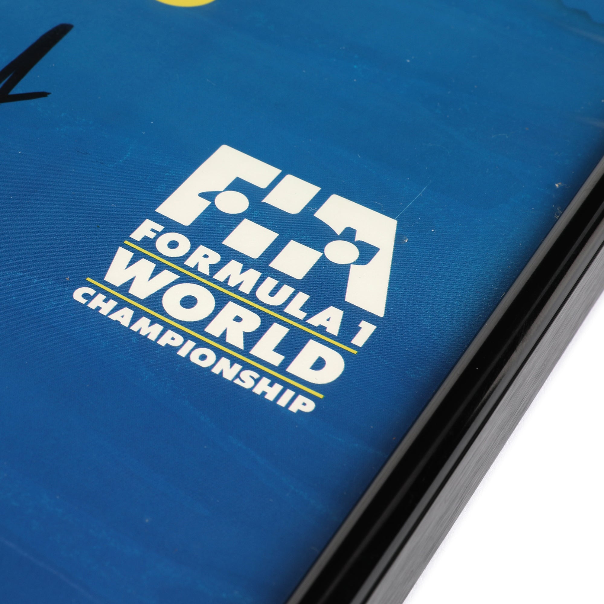 - Signed by Michael Schumacher, Jacques Villeneuve, Nelson Piquet, Damon Hill and Gerhard Berger.
